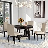 Harper & Bright Designs Round Kitchen Dining Table Set for 4, 5 Piece Farmhouse Wood Round Extendable Dining Table & 4 Upholstered Dining Chairs, Espresso (ST000074AAP-MZJ)