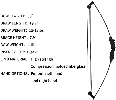 - Bow Size: With a bow length of 35 inches, a draw distance of 21 inches, a draw weight of 18 lb, and a weight of 1.1 pounds, which makes it easy to use without feeling overwhelmed for youth.