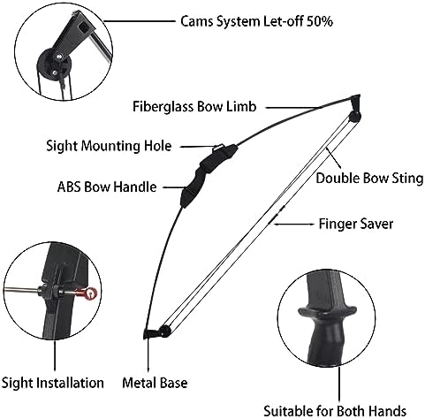 - Package Include: Included in the package is a children's compound bow, a rubber arm guard, 6 children's fibreglass arrows, 6 small sized suction cup arrows, 5 pieces of 40cm full ring target paper, and a children's arrow quiver, adapted to the needs of the beginner's practice!