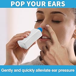 - Great for airline travel, mountain drives, swimming, and diving, our Tilcare Ear Pressure Relief Device aids in equalizing middle ear pressure to relieve painful discomfort and stuffiness. Designed for safe use by those ages 4 and up, the compact ear care product is perfect for placing in your pocket, jacket, carry-on, or backpack for use while flying.Similar to the act of yawning or swallowing, our ear popper device gently pushes a steady stream of air into the sinus cavities to open the eustachian tubes. This ventilates the middle ear, allowing each eustachian tube to drain and the air pressure to naturally equalize. The ear popper features a gently rounded tip for comfortable use.Rechargeable with the included USB-C cable, our handheld popping ear machine is lightweight and easily portable. It includes a soft carry case to keep it clean and ready for use while traveling.