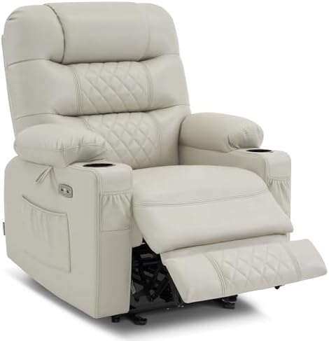 MCombo Zero Gravity Power Recliner Chair with Heat and Vibration Massage, Reclining Chair with USB Ports, Cup Holders for Living Room, Faux Leather PR621 (Light Grey)