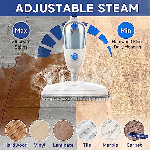 Steam Mop for Hardwood Floor Cleaning, Floor Steamer Cleaner Lightweight for Vinyl, Laminate, Carpet, Tile Hard Floors w/Adjustable Steam Modes & Height, 23ft Cord, 2 Washable Pad