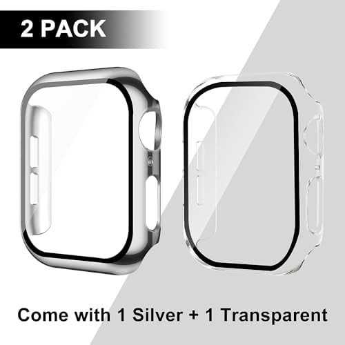Smiling 2 Pack Case Built in Tempered Glass Screen Protector Compatible with Apple Watch 40mm, Hard PC Case Overall Protective Cover- 1 Silver + 1 Transparent