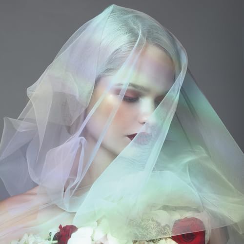 Magic Laser Holographic Fabric, 59in Iridescent Sequin Gradient Organza Lace for Wedding Photography Background Dress Party DIY Supplies, White