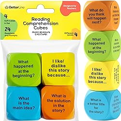 DIVE INTO OUR 4-LEVEL READING COMPREHENSION CUBES! Ensure individualized attention and progress with our tailored learning path, featuring four distinct reading levels. Our Reading Comprehension Cubes offer a dynamic teaching tool tailored for the contemporary classroom and home learning environment. With cubes spread across four distinct levels, teachers and parents can customize their approach based on each child's proficiency, ensuring individualized attention and growth. FROM READING ASSIGNMENTS TO RAVING DISCUSSIONS! Effortlessly capture the attention of young readers with interactive fun during reading sessions. With each cube roll stimulating thought-provoking discussions, children are encouraged to actively think, interpret, and share, making reading sessions more engaging and fun, offering a novel way to inspire genuine enthusiasm about reading, making it easier than ever to engage young readers Diverse Question Bank: Promote deeper understanding and keep curiosity alive with our diverse question bank, featuring 24 unique questions. Our Reading Comprehension Cubes offer a versatile and innovative tool that can be used to diversify lessons and promote deeper understanding. With 24 diverse questions, our cubes keep the curiosity alive and encourage children to think critically, making reading sessions more engaging and fun. SAFE & ADAPTABLE: Experience safe and adaptable learning with our soft foam cubes, specifically designed for kids aged 3 and up. These cubes offer a flexible learning tool that can be used in both classroom and home settings, providing enhanced learning opportunities for children TRUST BETTERLINE: Customer satisfaction is our top priority. We are a trusted brand dedicated to providing exceptional products you can rely on. With our unwavering commitment to quality, you can trust that your experience with BetterLine will exceed your expectations