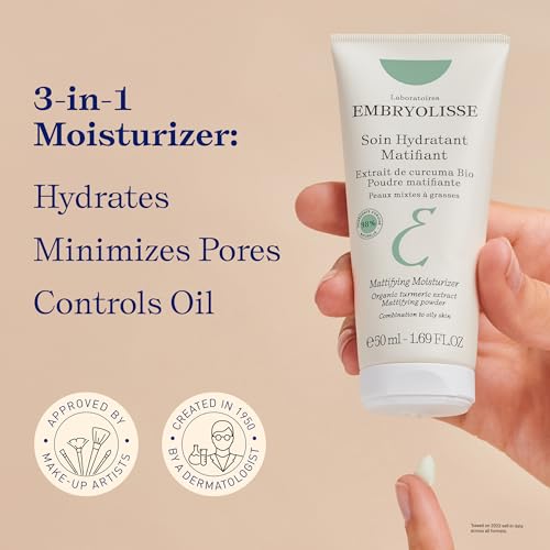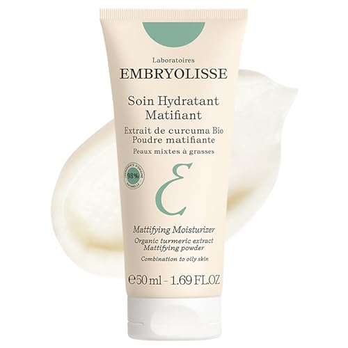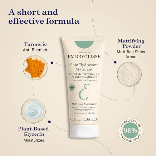 Embryolisse Mattifying Moisturizer, Oil-Control Face Cream with Organic Turmeric Extract. Lightweight Hydration, Non-Comedogenic for Oily & Combination Skin, 1.69 Fl Oz