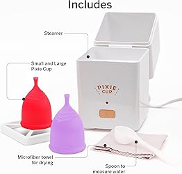 Pixie Menstrual Cups with Sterilizer - The Most Comfortable Soft Reusable Period Cup - Kills 99.9% of Germs with Clean Steam - Wash Your Cup in 3 Minutes! - Compact Sanitizer Kit for Feminine Care