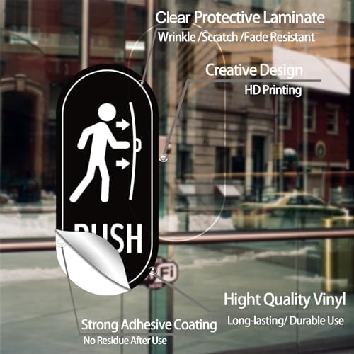 - Premium quality:Made of high-quality vinyl with Permanent Adhesive,overlaminate to feature a waterproof,weatherproof,scratch and UV resistant signs, the 5x2.2 Inch Push Pull Sticker Designer Sign is designed to be durable and long-lasting