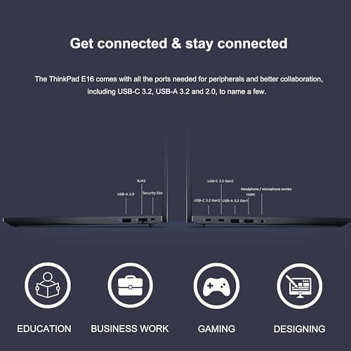 - INTRODUCING THE E16 — Boasting a compact design, the ThinkPad E16 is built for all your business needs. It includes multiple security safeguards and meets MIL-STD 810H durability standards, delivering reliable performance in demanding conditions. With long battery life and rapid charging (up to 80% in 60 minutes), it powers through long workdays effortlessly, ideal for remote work and outdoor use