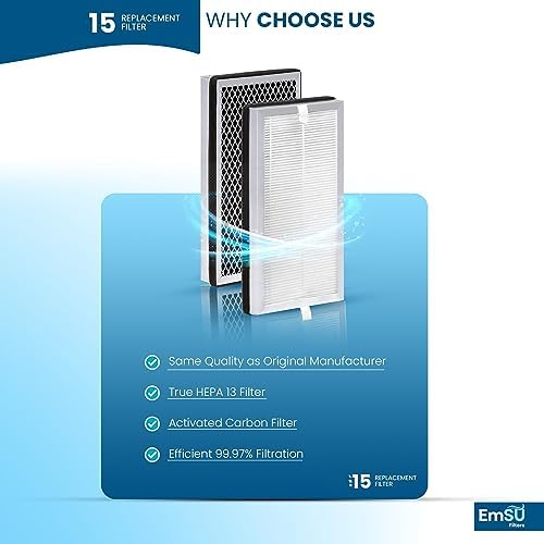 EMSU Air Purifier Replacement Filter, Compatible with 15, 3 in 1 Integration of Pre-Filter, H13 True HEPA and Activated Carbon