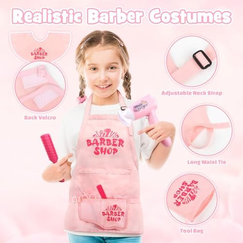- [Fun & Educational Beauty Salon Toys] Barber set toys are great for your children to explore and expand their imagination, as well as Improve cognitive skills, hand-eye coordination and fine motor skills. This set allows them to participate in role play for fun and teaches them the essentials of hair styling with rich accessories and realistic functions.