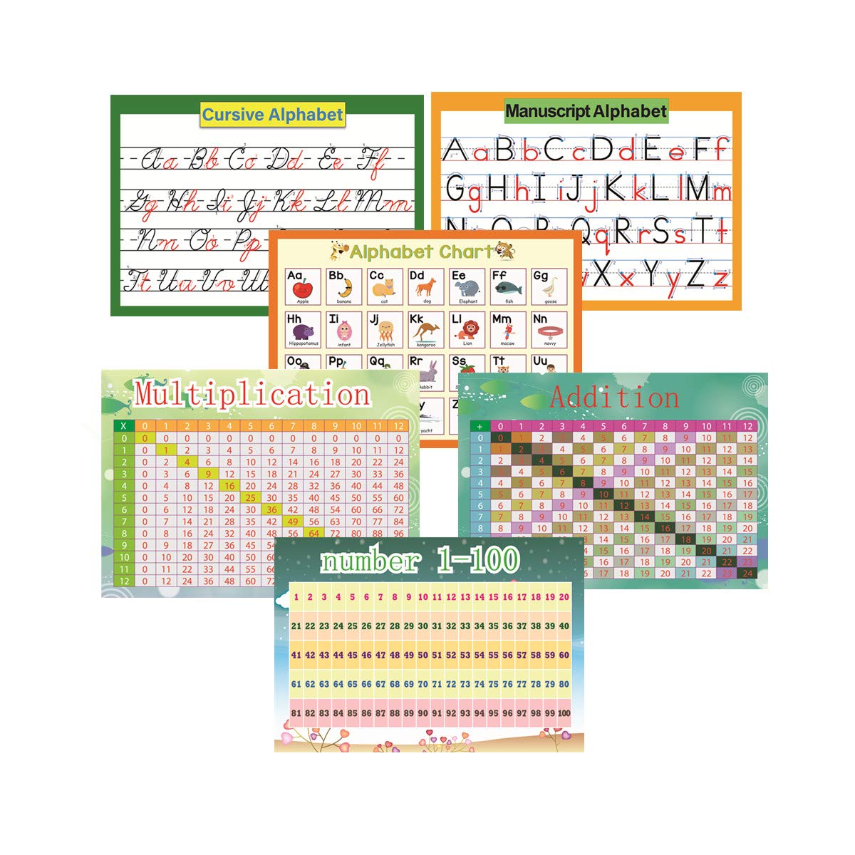 - FEATURES: 2 Pcs/set Charts Cover Cursive Alphabet Chart and Manuscript Alphabet Chart.