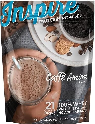 - Inspire provides 21 grams of super-efficient whey protein isolate per small scoop without fat, sugar, lactose, or gluten.