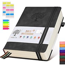 【365 Pages Premium Thick Paper】: Our PERCUN lined journal notebook is made of 365 pages high-quality 100Gsm thick ruled pager with an acid-free light Ivory paper that is thicker than normal. This premium quality paper will not cause bleeding, ghosting or smudging and is suitable for most types of pens,provides ample space for journaling, note-taking, and creative writing. The line spacing is 7mm, making it easy to write legibly and neatly. 【Hardcover Leather Journal Notebook】The A5 notebook (size: 5.9in x 8.5in) has a design with a stunning print pattern that adds a touch of elegance to your writing experience.The cover leather provides durability and protection to your journal for everyday use in the office, work, home, college, students, adults, scientists, and people in many other fields. It is perfect for writing, drawing, and note-taking. 【180°Lay Flat for Writing】Our notebook also comes with 180°Lay Flat Journal Notebook, which makes writing a breeze. The elastic pen holder and bookmark ensure that you never lose track of your pen, and the 2 elastic closures ensure that your journal stays securely closed. The 3 colored ribbon bookmarks and 3 sticky labels provide even more ways to customize your journal to your liking.Built-in back pocket that is great for storing loose notes, cards, or other important items. 【Versatile Use】This journal notebook is perfect for men or women and is suitable for use in the office, work, home, college, and students. Whether you want to use it as a journal for women, reading journal, travel journal for women, notebook for note taking, or a diary for women, this notebook is perfect for any need. 【Perfect Notebook & Gift】In short, the PERCUN Lined Journal Notebook is a high-quality, large journals for writing that is perfect for personal or professional use. It's a great gift for moms, dads, teachers, classmates, co-workers, wives, husbands, friends, daughters, sons and granddaughters. Buy yours today and start enjoying the benefits of this leather notebook!