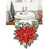 - 【Christmas Table Runner and Placemats】Exquisite applique embroidery Christmas red poinsettia and green leaf white Christmas flower table runner will add more festive atmosphere, and make your Christmas dinner more enjoyable. Perfect for the Christmas season to decorate your tabletop for holiday family gatherings.