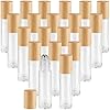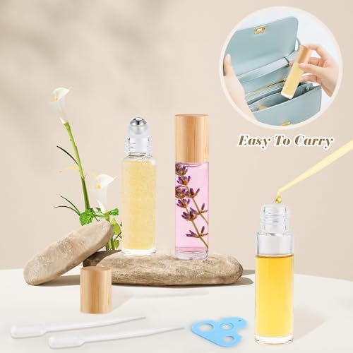 - Each clear glass bottle matches with a bamboo lid, bring you unique sense of beauty and a good mood when you use it or sharing. Thick glass and stainless steel roller ball.