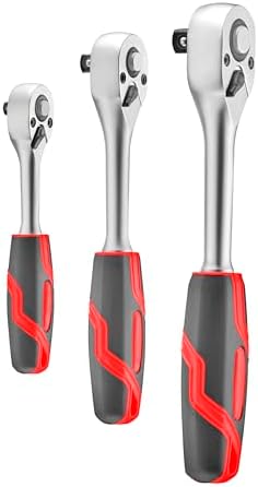 3 PCS Quick-release Reversible Ratchet Set, 1/4", 3/8", 1/2" Drive Ratchet Wrench, 72-Tooth Reversible Square Drive Socket Wrench