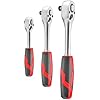 Kauplus 3 PCS 72-Tooth Reversible Ratchet Set, 1/4", 3/8", 1/2" Drive Quick-release Ratchet Wrench, Durable alloy-steel construction (CR-V) Made in Taiwan.