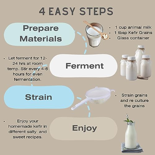 - 🏠Homemade Kefir milk: You will be in control of the ingredients you use, avoiding artificial flavors, colors, and additives. You will be able to re-culture your grains indefinitely.