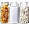 - [ Versatile Glass Jars with Airtight Lid Set of 3 ]: Glass canister set have 3 pack large glass jars, measuring 4.53 x 10.23 inch [about 78 floz], great for storing dry foods like flour, sugar,rice, cereals, keeping them dry and fresh.Equipped with Air tight clamp lids, creating an airtight seal to extend the shelf life, and ideal for crafting pickles,fermenting sauerkraut and canning a variety of jams and preserves.Elevate your food storage and preservation with this versatile glass jar set