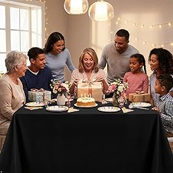 【Premium Fabric Tablecloth】You will receive 8 piece black tablecloth for rectangle tables, table cloth is made of and wrinkle resistant premium polyester fabric, that is soft and elegant look. These table cover materials are as skin-friendly as they are environmentally friendly. RestfulGlow Tablecloth feels very comfortable, won’t slide, it can protect your tables and furniture from scratches, stains and sun rays, giving a good sense of experience. 【Exquisite Workmanship】Premium black tablecloth cut entirely from a single piece of fabric and seamless designed and fine stitching to ensure an elegant look and no loose threads. This rectangular tablecloth is wear-resisting, no pilling, with wrinkle-free function for an always crisp,polished look. Add an elegant touch to your events, your guests will be impressed. 【Perfect Size】This black rectangle table cloth is 60" wide and 102" long, perfect for standard 6ft table, providing 15 inch drop, appropriate for seat 6-8 people. RestfulGlow Tablecloths always keep your dining table neat, elegant and stylish. The rectangle tablecloth is suitable for any indoor and outdoor banquet occasion either for decorative or functional uses, such as wedding, parties, ceremony, buffets, birthday, event, camping, everyday use and more. 【Easy to Care】This polyester tablecloth is reusable and easy to clean, machine washable with water (cold temperature) in gentle cycle, aslo can hand washable. A simple ironing will keep them looking new. After long-time use and repeated cleaning, it can still maintain its color and shape.Please do not bleach. 【Excellent Service】We are committed to providing our customers with high-quality products and happy shopping experiences.Your satisfaction is our ultimate goal, if you are not satisfied with our products or services for any reason, please tell us your feeling at any time, we will quickly solve your problem.