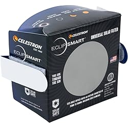 - Turn your telescope, spotting scope, or DSLR camera into a solar scope! The EclipSmart Universal Folding Paper Solar Filter is a must-have accessory perfect for viewing or photographing the Sun and eclipses like the upcoming 2023 Annular Solar Eclipse and 2024 Total Solar Eclipse. Affordable, easy to use, and best of all, Solar Safe, this filter conforms to the ISO 12312-2:2015(E) international safety standard. The EclipSmart Universal Folding Paper Solar Filter works with your telescope, spotting scope, or DSLR camera with an objective barrel outside diameter of 75 to 100mm. The solar filter fits around your optical device with its adjustable side panels and secure in place with an elastic band. When you aren't using the filter, fold it flat and place it inside the reusable bag. If you use this filter with a DSLR camera, use the lens' sun shade to increase the lens diameter and aid in securing the filter with the elastic bands. This solar filter will fit the following Celestron telescopes and spotting scopes: PowerSeeker 60EQ, 70EQ, 80EQ and PowerSeeker 50AZ, 60AZ, 80AZS telescopes, AstroMaster 70AZ, 90AZ, 80AZS, 70EQ, and 90EQ telescopes, AstroMaster LT 60AZ, 70AZ telescopes, Travel Scope 50AZ, 60AZ, 70AZ, and 80AZ telescopes, AstroFi 90 telescope, StarSense Explorer 80AZ telescope, Ultima 18-55x65 and Ultima 20-60x80 spotting scopes, Regal M2 16-48x65 and Regal M2 20-60x80 spotting scopes, LandScout 12-36x60 spotting scope, TrailSeeker 16-48x65 and 20-60x80 spotting scopes, and the C70 Mini Mak Spotting Scope. EclipSmart solar products feature Solar Safe filter technology—the ultimate protection from harmful solar radiation, including IR and UV light, plus 99.999% of visible light. Celestron Solar Safe filter technology is SAFE for direct observation of the Sun and has been independently tested to conform and meet the transmission requirements of ISO 12312-2:2015(E), Filters for Direct Observation of the Sun.