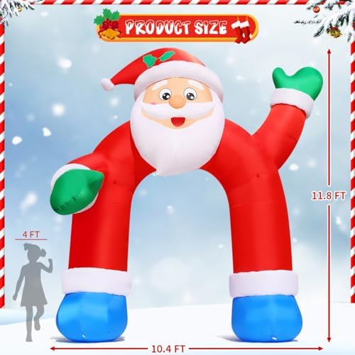 COMIN 11.8 FT Christmas Inflatable Santa Claus Arch Outdoor Decorations Shakable Hand Xmas Blow Up with Built-in LEDs for Party Yard Lawn Garden Indoor