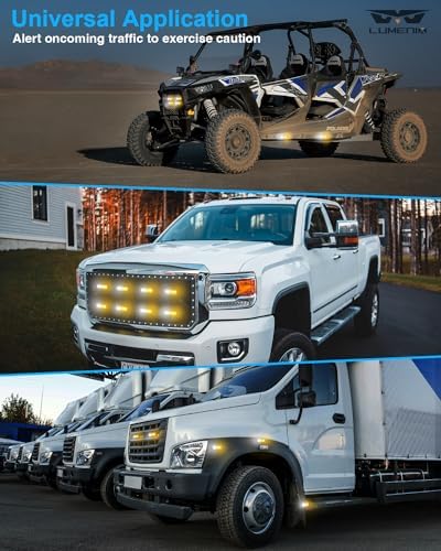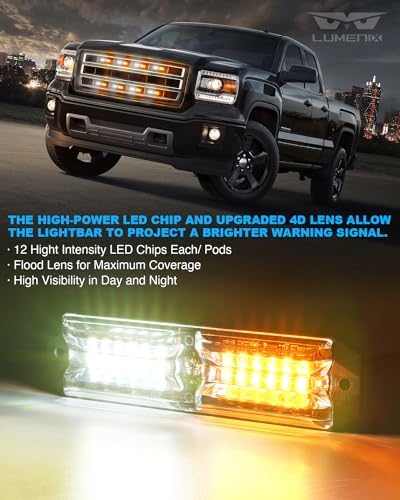 - HIGH VISIBILITY - Our grille side mark strobe lights provide exceptional functionality, and also boast a sleek and slim design that adds a touch of modernity to your vehicle. Each light head is equipped with 12 high-intensity LED chips. Astonishing brightness that cuts through darkness and inclement weather conditions, ensuring that you are seen from afar. Combined with the scratch-resistant and crystal-clear lenses, maximizes light output, giving you unparalleled visibility on the road.