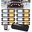 LUMENIX Grille Strobe Lights Kits for Trucks w/Controller, 8PCs High-Intensity LED Deck | Surface Mount Emergency Construction Vehicles Snowplow Towing Side Marker Flashing Warning Light- White Amber