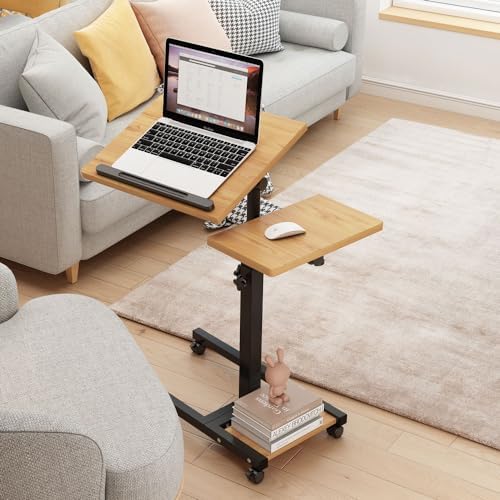 Mobile Height Adjustable Laptop Desk with Mouse Pad, Portable Laptop Desk Rolling Tiltable Table with Small Side Table for Couch,Rolling Computer Stand