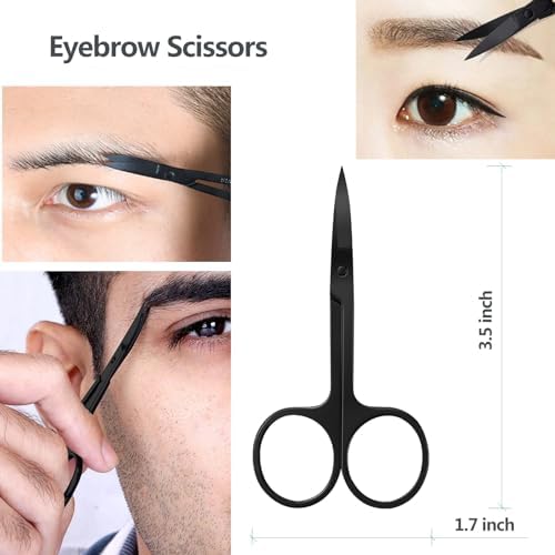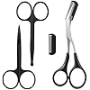 Eyebrow Scissors with Comb, KAJUDA Facial Hair Small Grooming Scissors For Men Women - Eyebrow Trimmer Scissor for Eyebrows, Nose Hair, Mustache, Beard, Eyelash - 3PCS Black