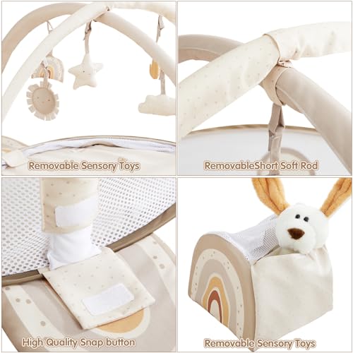 - 【5 IN 1 LARGE BABY GYM】 Our baby gym play mats give babies plenty of space for happy tummy activities and games, which can help baby grow from newborn to active toddler and allows baby to experience more fun and new challenges.