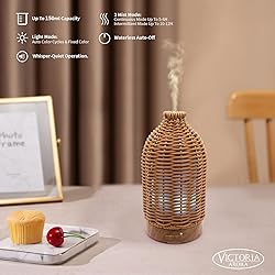 【PREMIUM MATERIAL】: Experience the natural beauty of our rattan diffuser, featuring a traditional wicker weave design.compact and portable,100ml water capacity,easy to clean and space saving.Diffusers for home,wood grain base,suitable for any home and office decoration. 【MULTI-FUNCTION AROMATHERAPY DIFFUSER】: Rattan diffuser realizes three functions of humidifier, aromatherapy essential oil diffuser and night light.With 7 different LED lights,you can choose to fix to different light colors by pressing the button multiple times. 【QUIET DESIGN】: Diffusers for essential oils,mute operation,can soothe the mood,relieve stress,promote sleep,stable mist during reading,work,yoga,let it run silently.Air diffuser for essential oils with automatic shutdown function,open at night,without worrying about overheating,to meet your different needs. 【IDEAL GIFT】: Handcrafted Rattan diffuser is an ideal gift for elders,lovers,and friends.Valentine's day,Christmas,birthday,anniversary,you can use cool mist diffuser as a gift gives to them,will be them very happy when they receive gifts. 【WIDE APPLICATION】: Quiet diffuser is very suitable for home,office,gym,studio,etc,just fill up with water and drop in essential oils,you can easily enjoy the aroma.Room diffusers are suitable for anyone to use.