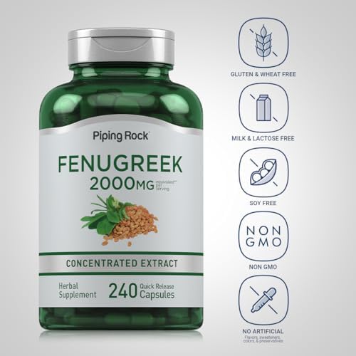 Cápsulas de Fenogreco Piping Rock | 2000mg | 240 Cápsulas | Extracto de Semilla Concentrado | para Mujeres y Hombres | Suplemento No GMO, Libre de Gluten
