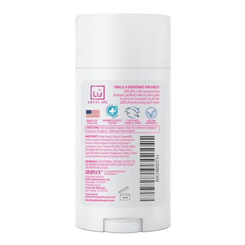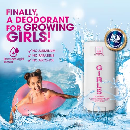 - DERMATOLOGIST TESTED FOR GIRLS 8+. LEVEL UP DEODORANT FOR GROWING GIRLS, is specifically formulated for young, sensitive skin. 100% NON-TOXIC, Level Up contains NO aluminum, NO parabens & NO alcohol. Level Up was created with safety & health as a top priority.
