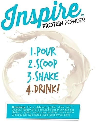 - Inspire provides 20 grams of super-efficient whey protein isolate per small scoop without fat, sugar, lactose, or gluten.