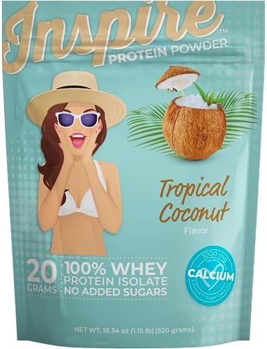 A coconut lover's DREAM. Close your eyes and the palms sway and the waves crash on your beach in Maui... without leaving home. SUMMER IS HERE! Inspire Tropical Coconut melts into a protein drink that tastes like light sweet coconut milk. Blend with unsweetened coconut milk or chocolate almond milk for a mind-blowing flavor treat! We start with pure sweet clean whey protein isolate so the coconut flavor shines. And there's a Plus. The smooth delicious Inspire protein drink you're sipping contains 650mg of Calcium*! *When blended as suggested with an 8-ounce cup of milk or calcium-fortified almond milk.