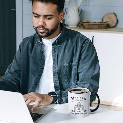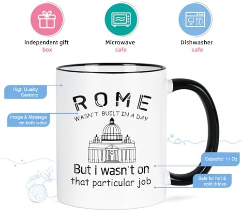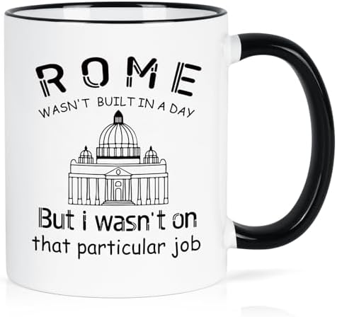 - FUNNY GIFTS FOR MEN WOMEN: The coffee mug with hilarious printing " Rome Wasn't built in a day, but I wasn't on that particular job " makes perfect gift for your friends, coworkers, bosses who are construction workers, engineers, architects, managers, builders. This funny coffee mug is sure to bring a smile to their face.