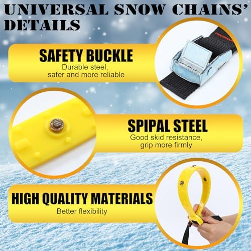 - Applicable to Various Occasion: whether you live in a snowy climate or plan an adventurous road trip, these tire chains for snow are suitable for battling most kind of road conditions, such as snow road, mud road and sand road; It makes them a versatile and essential vehicular accessory, ready for both emergencies and routine usage