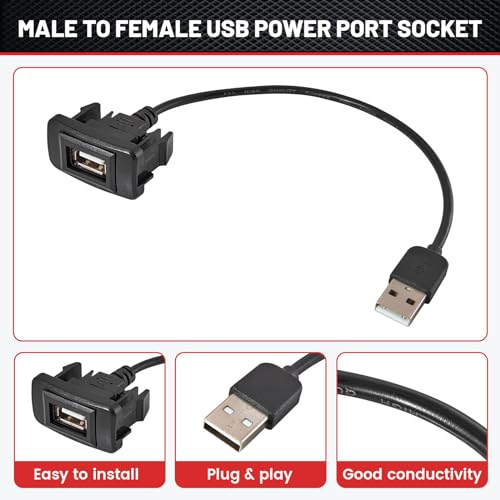 RED WOLF 15.7 x 7.9 Male to Female USB Power Port Socket Adapter Wire Plug Fit for Toyota 2003-2006 Hilux Vigo 4Runner Flush Mount Square USB Dashboard Panel Extension Cable Adaptor Connector