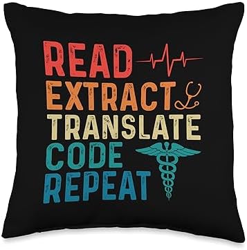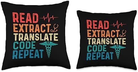 Funny Medical Coder Designs Collection Read, Extract, Translate, Code, Repeat. Medical Coder Throw Pillow, 16x16, Multicolor