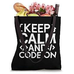Keep Calm And Code On, Funny Medical Coder Quotes. Tote Bag