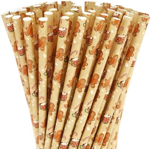 - GINGERBREAD DESIGN: Our drinking straws are colored in brown and patterned with cute gingerbread man, the cartoon style is unique and adorable, perfect to celebrate holidays, can add more fun to your parties.