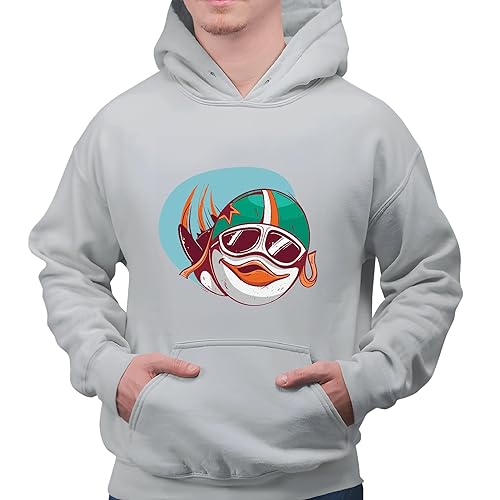 Gift for Aviation Lovers Penguin Pilot Helm and Goggles Flying Through the Air Gray and Muticolor Unisex Hoodie