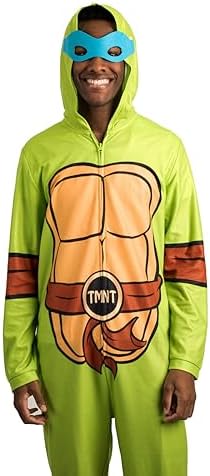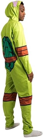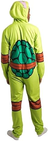 Transform into your favorite Ninja Turtle with this officially licensed TMNT cosplay union suit! This cool cosplay suit is designed to replicate your favorite crime-fighting turtles, complete with an attached hood and interchangeable felt masks for an authentic look. Crafted from 100% polyester and coral fleece, it provides ultimate comfort and durability, making it perfect for cosplay events or cozy nights in. Available in a range of sizes from small to XXL, it ensures the perfect fit for everyone. To keep your TMNT kigurumi looking its best, simply machine wash cold with like colors and tumble dry low. Get ready to embrace the world of cosplay with this high-quality, officially licensed union suit that's designed to delight TMNT fans of all ages.