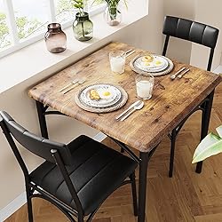 Comfortable Chairs: Made of premium MDF board and solid steel, which features a sturdy frame for a long lifespan. The Upgraded Dining Chairs seats and backrests are padded with thick cushions, keeping you comfortable all the time. More comfortable than the traditional wooden chair. Sturdy Frame: This rustic kitchen table set with a metal strong frame, which offers a longer service life and excellent stability. Constructed of high-grade MDF board and thickened steel frame and pipe wall, this table set is long-lasting and you can count on it to be a favorite for years to come. Design for Small Spaces: The dining chairs can be neatly stored underneath the square dining table for space-saving convenience. It is an excellent solution for small spaces, such as condos, kitchens, studios, or apartments. Table Size 29.2” L*29.2” W*30” H, Chair Size 17” L*18.6” W*33.8” H. Easy to Maintain: The surface of the dining table set is a waterproof and anti-corrosive coating, You can easily wipe soup, sauce, and dust clean, and the surface will not be hurt, and is sturdy for long-term use. Easy to Assemble: Following the instructions and using the tools assembly is completed effortlessly. Contact our customer service and we will quickly resolve related issues for you.