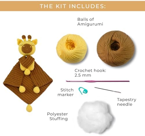 CÍRCULO Circulo Amigurumi Crochet Kit - Lovey Blanket - All Included, Easy Instructions - Crochet Set for Intermediate - Animal Crochet Kit, Premium Amigurumi Yarn for Crocheting - Giraffe