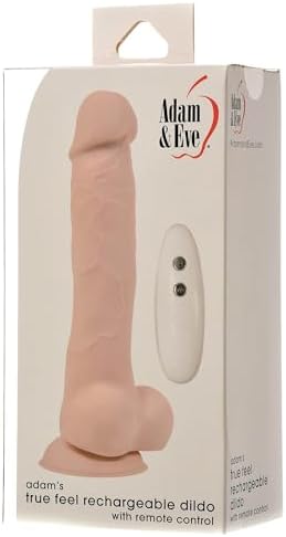 Adam & Eve Adam's True Feel Rechargeable Dildo with Wireless Remote Control, Big Thrusting & Vibrating Adult Sex Toys for Women & Couples, Suction Cup Base Long Distance Realistic Vibrator, Beige