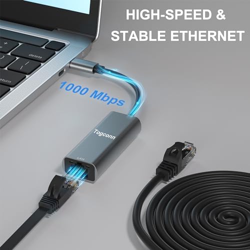 - Gigabit Fast Transmission: Togconn USB C to Ethernet Adapter supports 1000Mbps at fast USB 3.1 speeds and is also backward compatible with both USB C 3.0. Comes with two CAT6 cables (Flat and Round), fully capable of supporting up to 1GB of transmission.