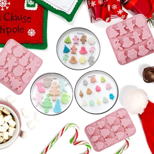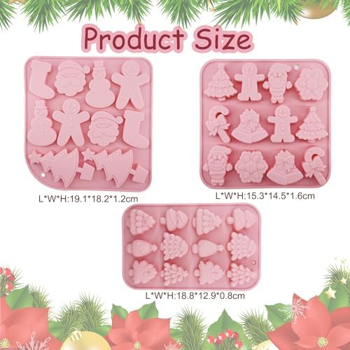 - Good Combination: You will get 3 pink christmas molds silicone. include 12 cavities different shape christmas tree chocolate molds, 12 cavities gingerbread snowflake candy mold, 10 cavity snowman chocolate mold bell santa claus candy mold in the package, total 34 cavities. christmas silicone molds of different styles are enough for you to decorate your favorite cake shape on the cake. Perfect for christmas themed party and daily candy chocolate DIY.
